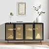 63" Large Buffet Sideboard with LED Light, Storage Accent Cabinet with 4 Doors, Wood Console Cabinet for Living Room, Black