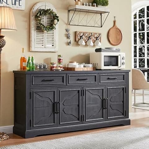 Classic & Modern: The buffet cabinet are paired with metal mesh and bohemian style, the clean lines and wood grain of the buffet give it a modern and sleek appearance, making it suitable for most home decors. Visible Cut-out Metal Mesh: The Cut-out metal mesh design makes the cabinet has excellent sound transmission and heat dissipation, suitable for entertainment media console; bring the perfect visual effect and add charm to your home. Smart Led Lights: The LED light strip adds a mesmerizing ambiance and improves visibility, making it effortless to locate and select your desired items. Multifunctional Cabinet: Perfect for the entryway, this accent cabinet can also be used in the kitchen, living room, pantry, office or hallway for added storage space, making your home more tidy and orderly. Stable & Sturdy Structure: The console table is made of MDF board, metal mesh, and sturdy metal legs, ensure it stability and sturdiness, last for a long time and will serve you well over an extended period, providing both functionality and durability. Ample Storage: Dimensions 30.8”W x 15.8”D x 35”H; with 2 doors, inner shelf, and a spacious desktop; large storage features to keep your space organized and comfortable.