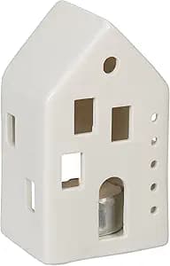 Relaxdays Tealight House Ceramic, Light Through Windows, for 1 Candle, HWD: 12 x 7 x 6 cm, Cute Table Decoration, White
