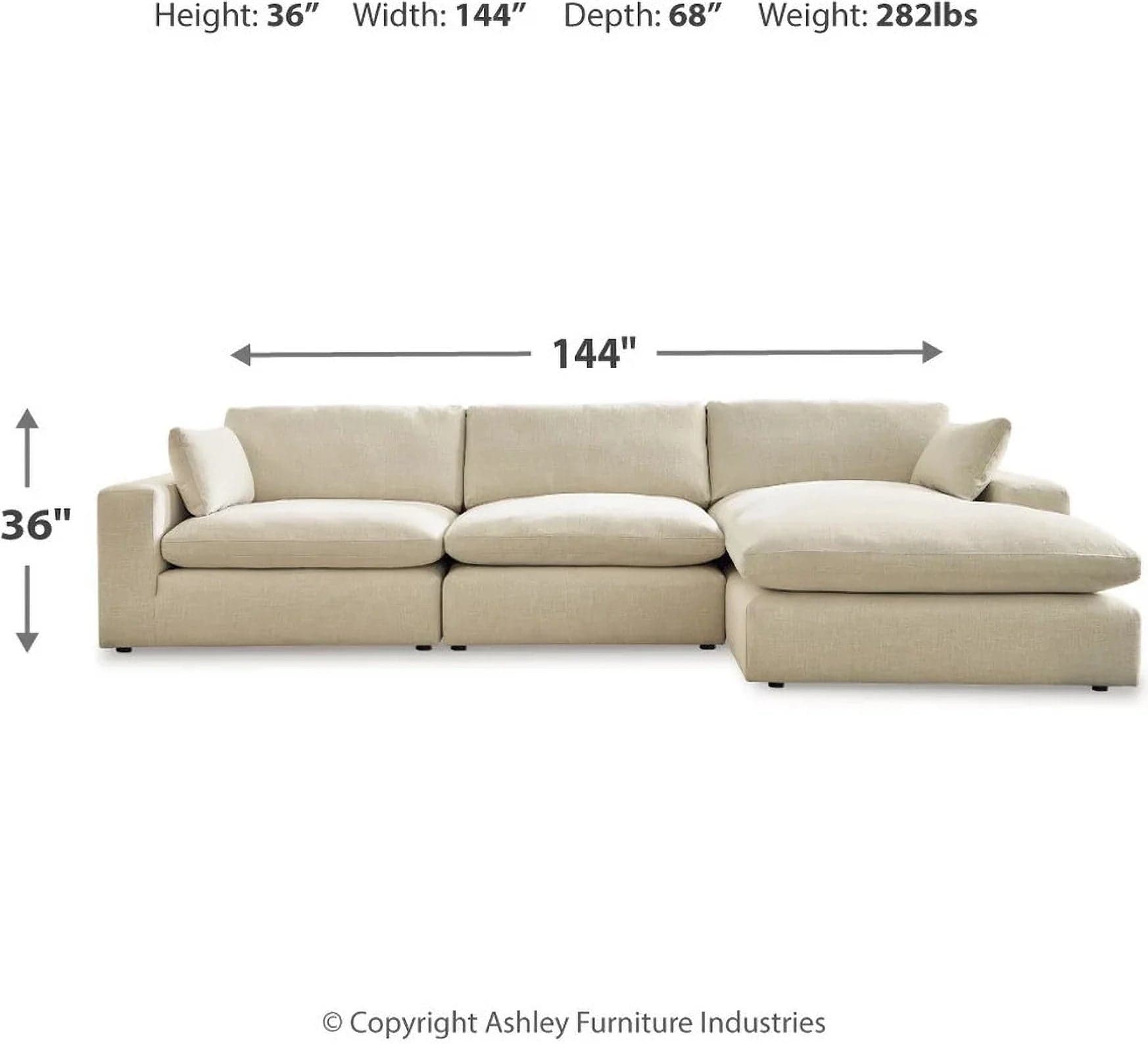 Elyza 3-Piece RAF Sectional With Chaise In Linen