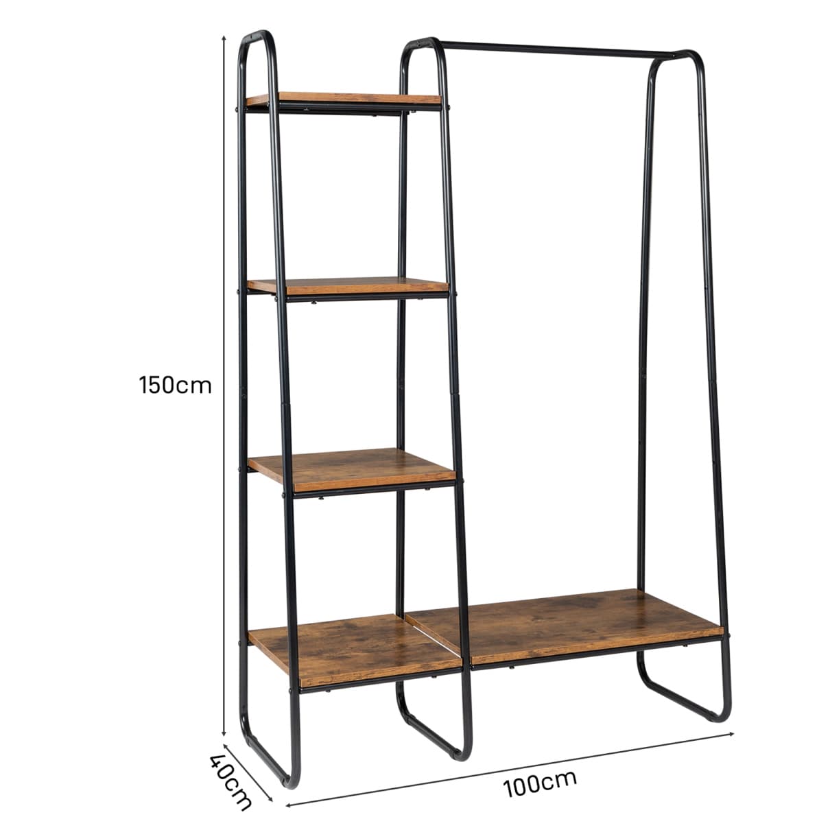 Rustic Clothes Rack, Clothing Rack for Hanging Clothes, Heavy Duty Garment Rack with 5 Wood Shelves, Freestanding Portable Closet Organizer for Bedroom/Entryway/Boutiques, Matte Black