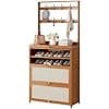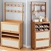 Bamboo Shoe Cabinet, Coat and Shoe Rack for Entryway Living Room, 3 Flip Door Shoe Storage with Hooks(Brown,L:24in/60cm)