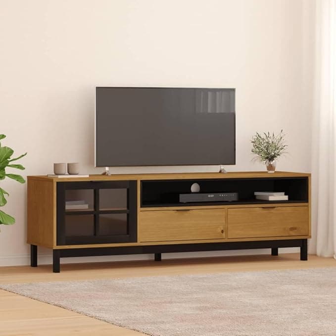 This wooden TV cabinet is designed to be a focal point of your room with a trendy yet practical design. Solid pine wood is a beautiful natural material. Pine wood has a straight grain, and the knots give the material its signature, rustic look. Made of solid pine wood, the TV stand is durable and sturdy. The TV unit has ample storage space which makes it an ideal place for storing all your magazines, DVDs, and other items. The cable hole at the back of the cabinet allows you to organize the mess wires easily. The sturdy top of the media cabinet is ideal for displaying decorative items like photo frames and plants.