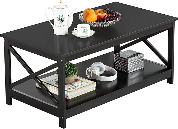 Yaheetech X-Design Black Coffee Table with Lower Storage Shelf Cocktail Table for Living Room/Apartment/Dormitory, Black