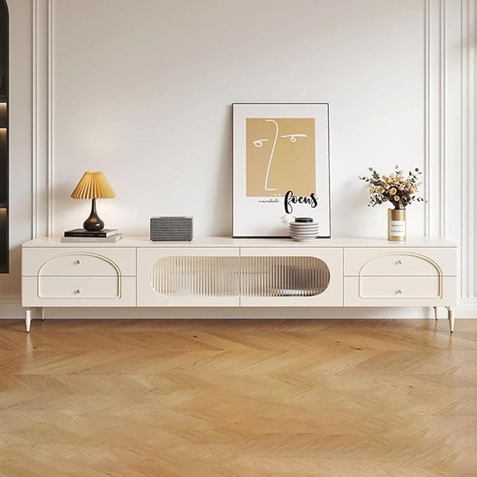 Enhance your TV viewing experience with our TV Console, which combines selected materials and an elegant design. It provides enough storage space, including 4 drawers and 2 cabinets. The TV stand is made of high-quality environmentally friendly panels to ensure durability and stability. The smooth, waterproof surface is easy to clean. The multi-functional table is suitable for various occasions, and the elegant color suits most decoration styles.