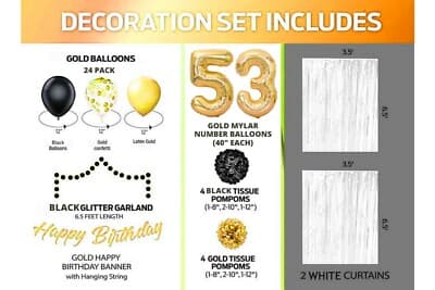 Gold & Black 53rd Birthday Decorations - 40" Number Balloons & More -Boy or Girl