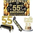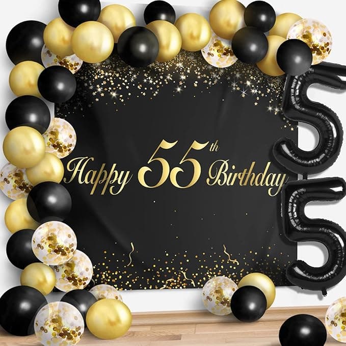 Happy 55th Birthday Balloons Black Set Decor - Cheers to 55 Years Old Party Theme Garland Banner Backdrop Decorations For Women and Men Supplies