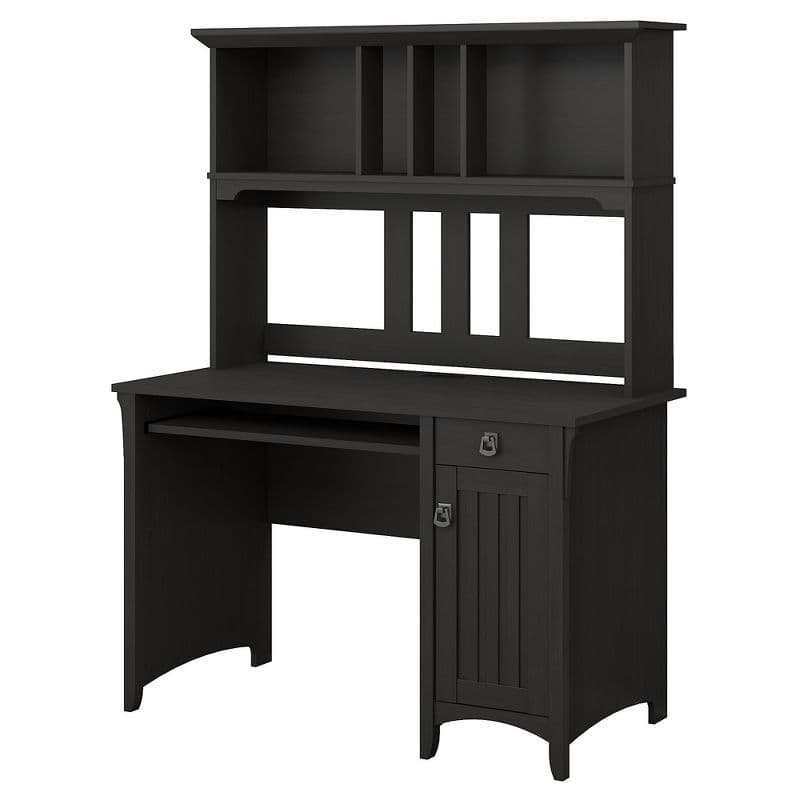 Salinas Mission Style Desk with Hutch Vintage Black - Bush Furniture: Office Workstation, Enclosed Cabinet, Open Shelf