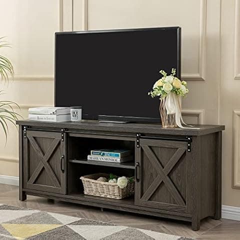 GAZHOME Modern Farmhouse TV Stand with Sliding Barn Doors, Media Entertainment Center Console Table for TVs up to 65”,2-Tier Large Storage Cabinets,Rustic TV Stand for Living Room Bedroom,Dark Grey