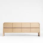 Classic storage defies expectations in our exclusive, design-forward credenza. Made of solid mahogany and white oak veneer, the console floats a rounded rectangle of eight drawers in the curving embrace of a waterfall frame. The natural finish highlights the lively wood grain, showcased in the seamless design and flat-front drawers. This piece is part of our exclusive collaboration with star designer Leanne Ford. Curated and crafted around the world, the collection brings Leanne's cool, effortless vibe home to you. By choosing FSC ®-certified furniture, you are supporting responsible management of the world's forests.