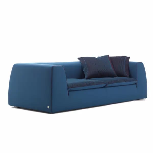 Divano Igloo design di Enrico Cesana per Busnelli con una robusta struttura in profilato di metallo e massello di legno. L’imbottitura è realizzata in poliuretano espanso indeformabile a densità differenziata senza C.F.C. e fibra 100% poliestere.