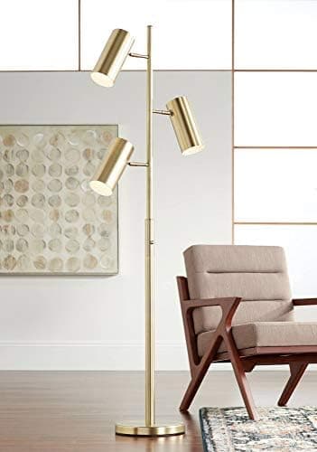 Haz que tu decoración destaque con esta lámpara de pie de tres luces de Possini Euro Design. Un bonito acabado de latón satinado cubre la construcción de metal añadiendo una elegancia atemporal a este estilo. Con un interruptor giratorio de cuatro vías puede agregar la cantidad justa de brillo a su espacio. Este moderno diseño de lámpara de pie de árbol cuenta con tres luces ajustables que se pueden dirigir individualmente y controlar para la lectura o la iluminación general de la habitación.