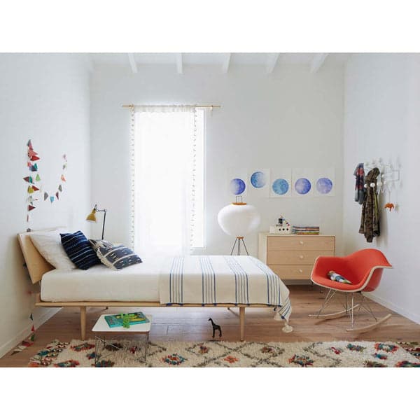 Despite being updated to reflect today’s materials and style, the Nelson Thin Edge Bed still has all the hits from the original—a slim, horizontal profile, precise detailing, and expert woodcraft. George Nelson's elegant minimalism graces the bedroom once more. Headboard options The headboard is available with or without woven cane. Choose walnut with cane for a pleasing contrast, or white ash with cane — or no cane at all — for monochromatic minimalism. Twin, full and queen platforms ship fully assembled. King and California King platforms ship as two halves. Solid walnut or white-ash frame. Solid ash slates allow for air circulation. Two headboard and base styles. Sizes and wood finishes reflect today’s aesthetics.