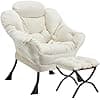 Congermom Lazy Chair with Folding Ottoman Modern Large Accent Chair,Contemporary Lounge Leisure Sofa Chair with Armrests Upholstered Sofa Armchair Reading Chair for Bedroom,Dorm & Office (Beige-f)