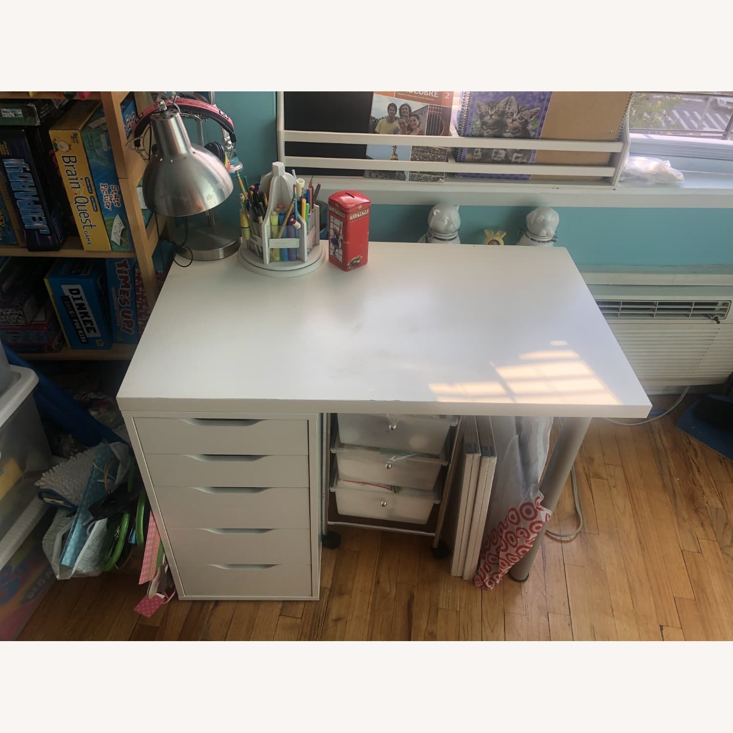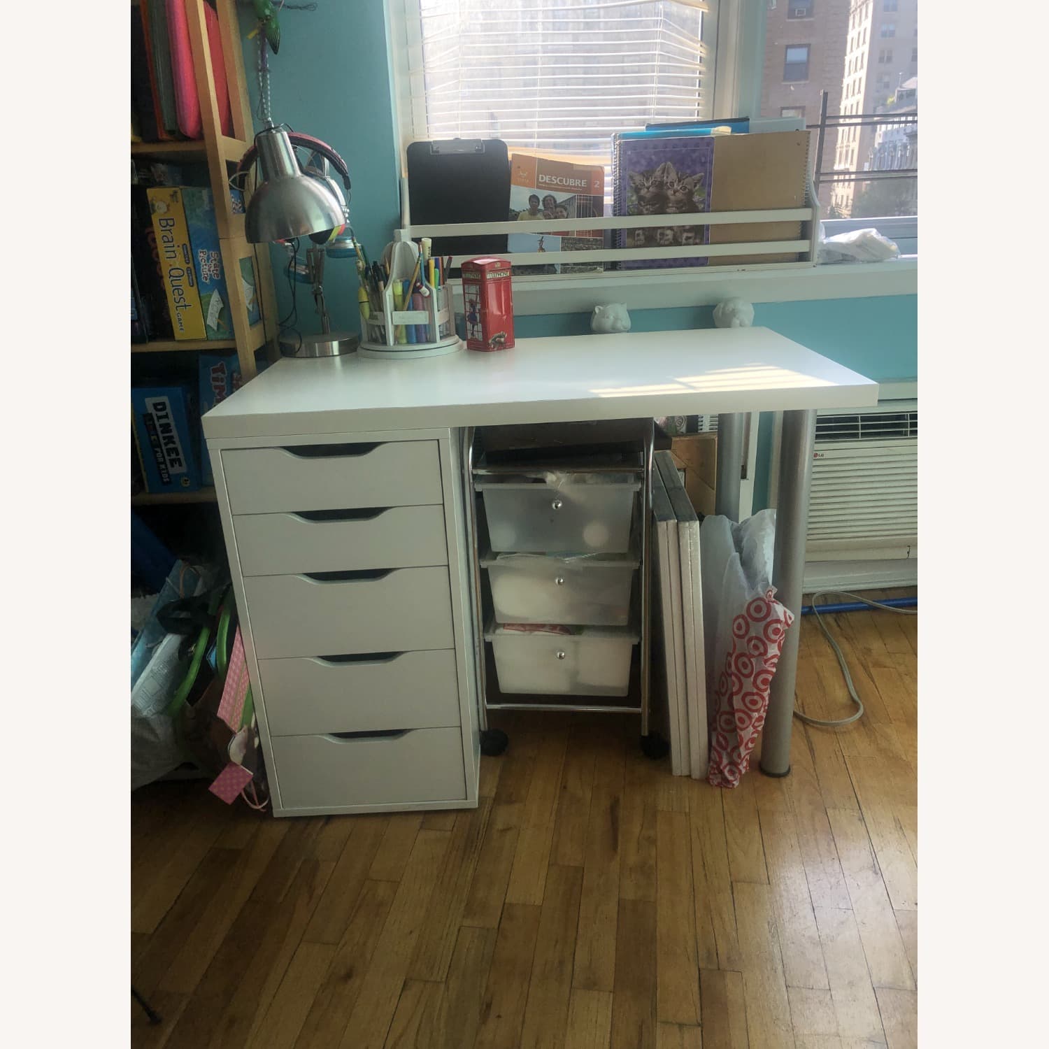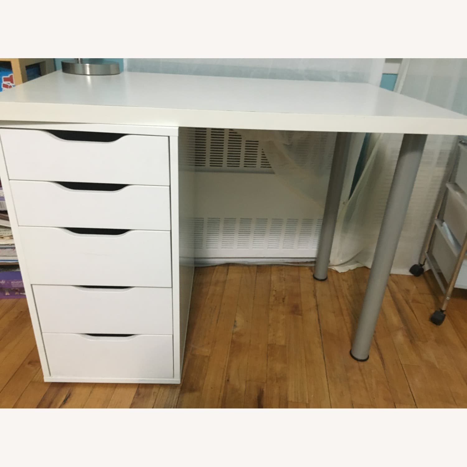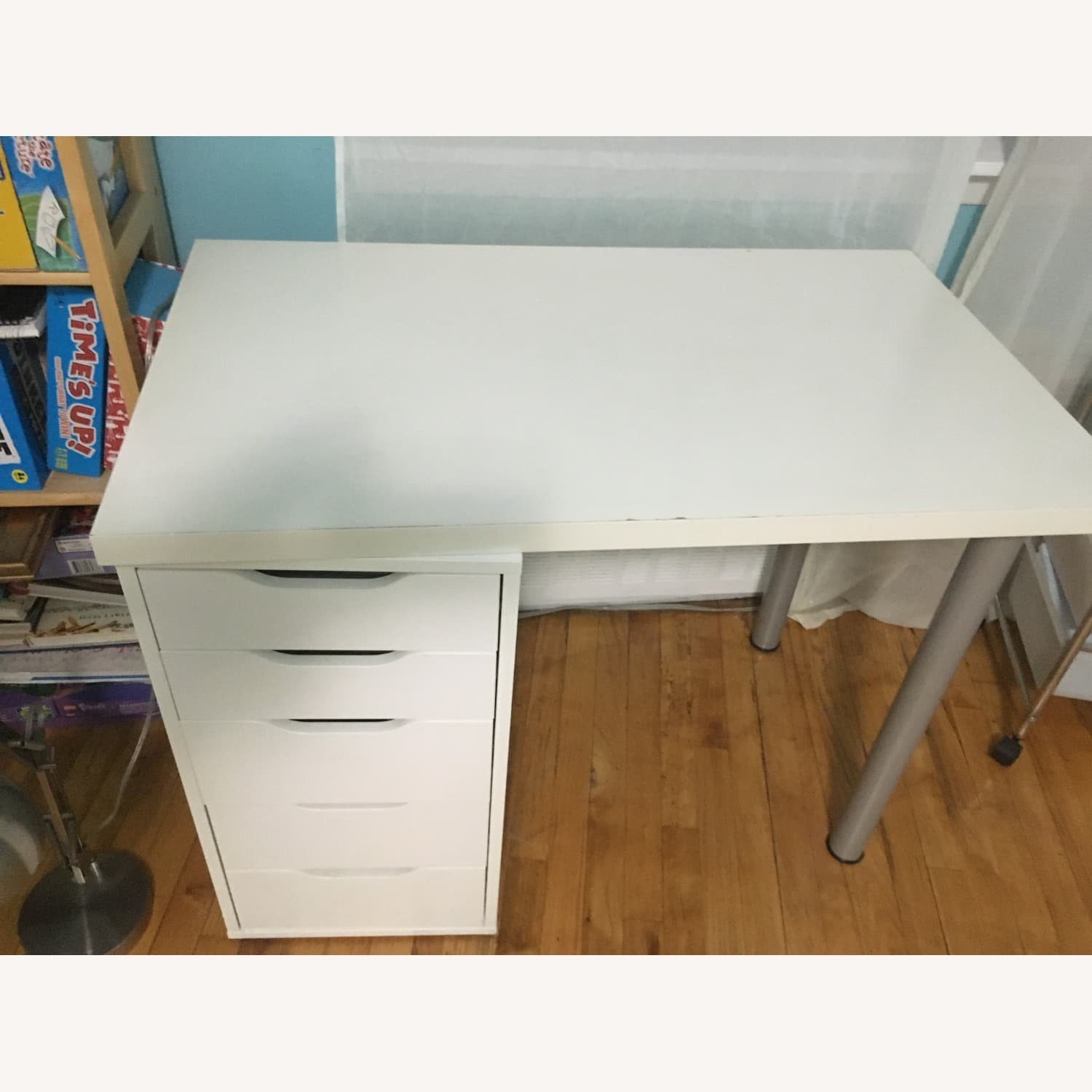 IKEA "LAGKAPTEN / ALEX" desk with 5 drawers in the color white. Used for 5 years. No stains, but light scratches and discoloration.
