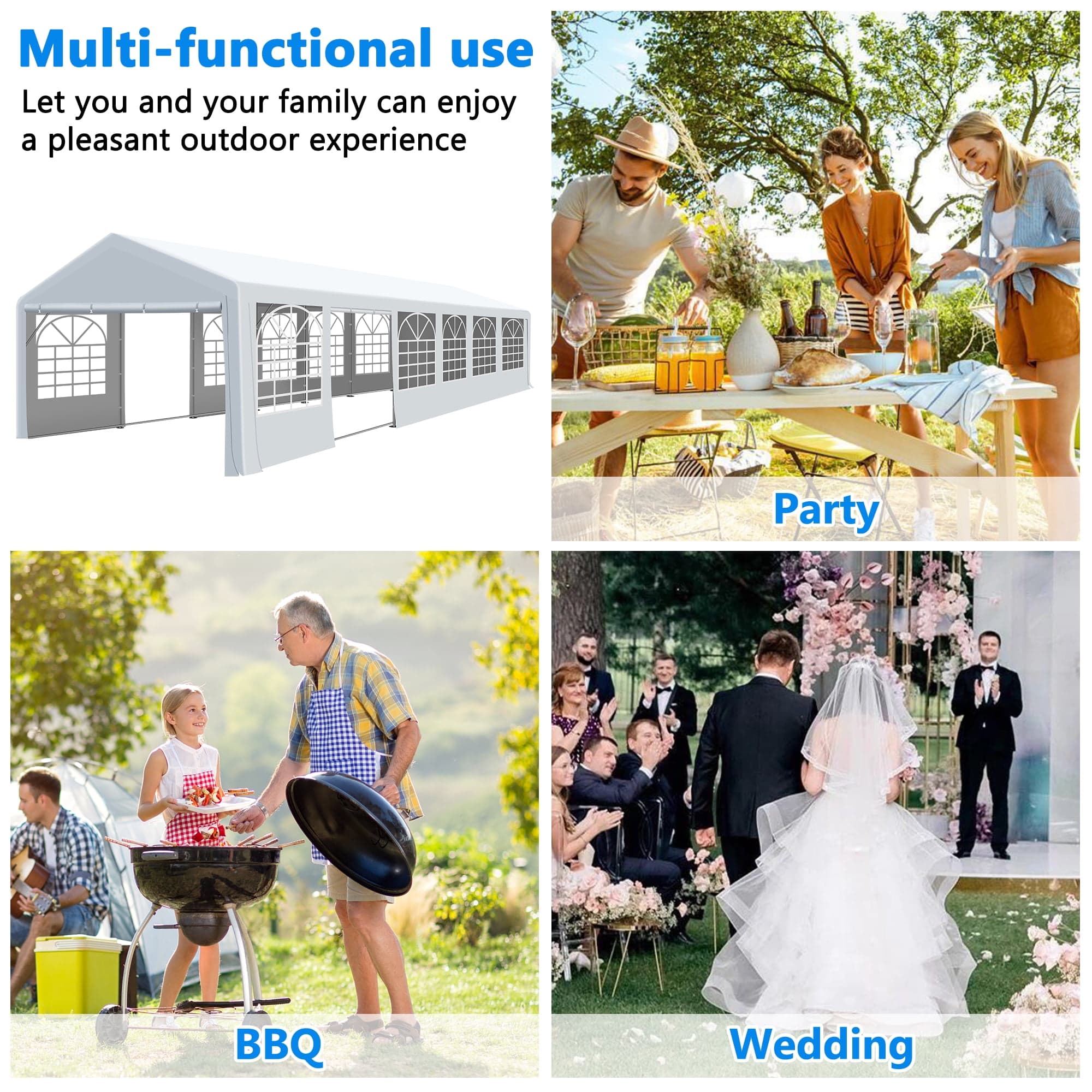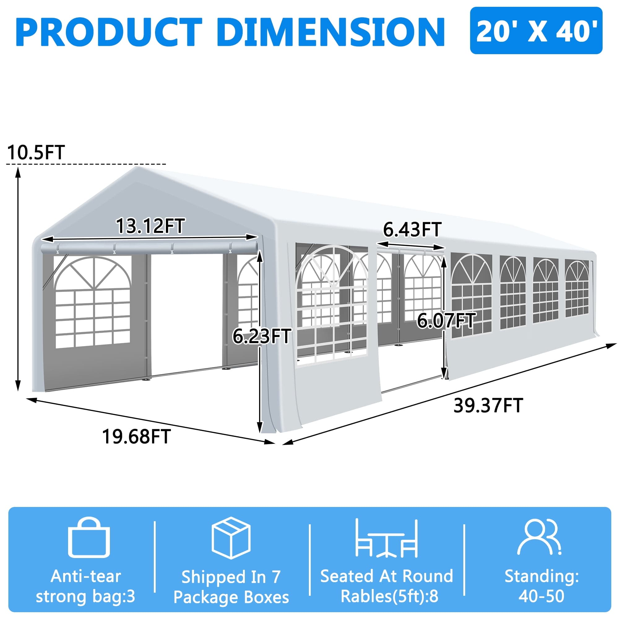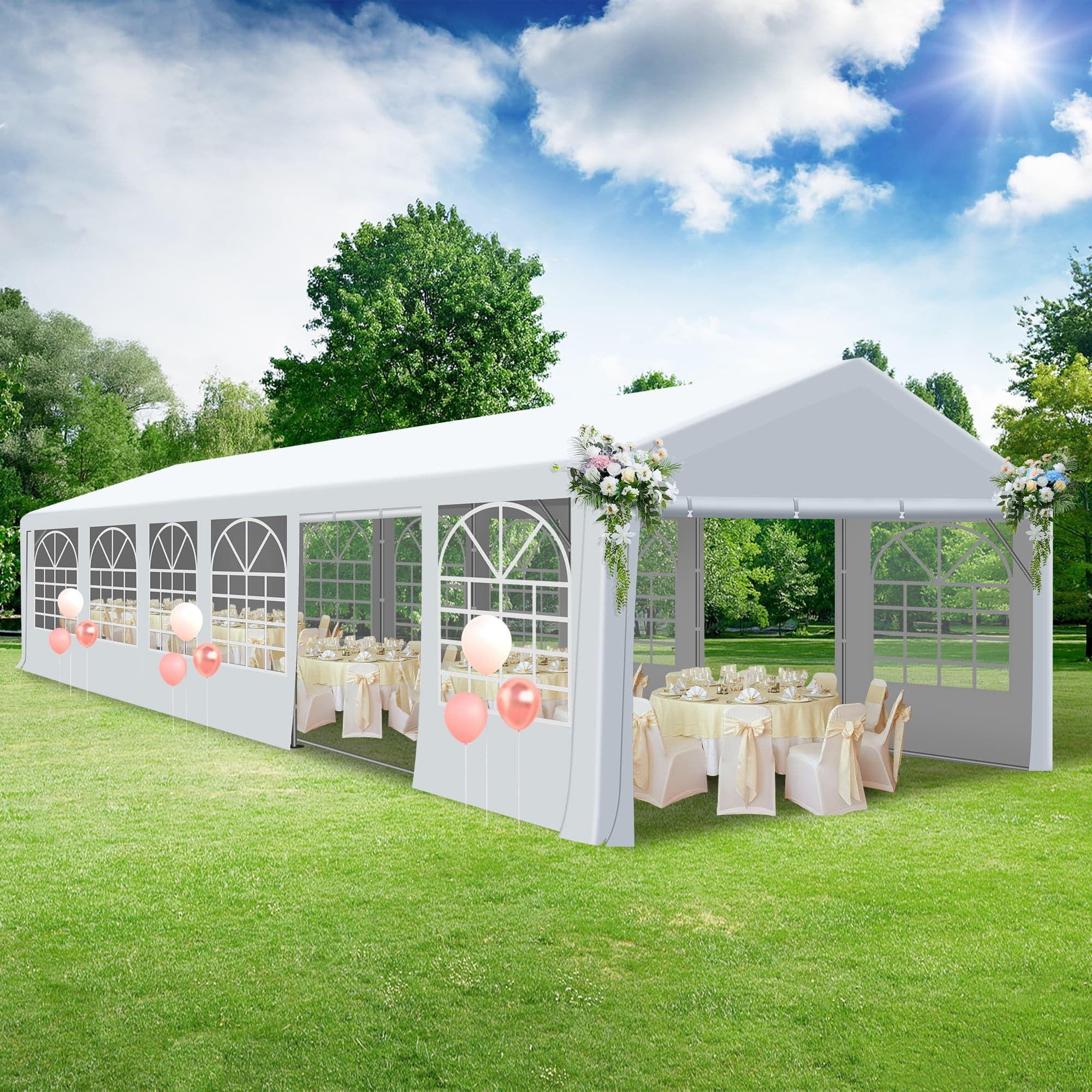 Shop the COVERONICS 20x40FT Patio Party Tent with windows, perfect for outdoor events, parties, and festivals. Comes with 2 roll-up doors for easy access.
