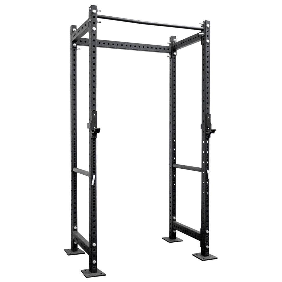 The Silverback is the third largest of the Lightning Series racks, after the Warrior and the Machine, making it more suited to home gym athletes, but don’t let its target demographic fool you. The Silverback is a beast of great size and power. The footprint--the space inside the rack--is 30-by-51 inches, room enough for all the Olympic lifts which, depending on the rating of your J-hooks or spotter arms, can be performed at an upper capacity of 1,000 pounds, thanks to the Silverback’s heavy-duty 3-by-2-inch 11-gauge steel beams. Every aspect of this rack is built to last, from the quality of its steel to the thick coat of powder-black paint that makes the Silverback extremely resistant to chipping or scratching while, at the same time, looking great. The Lightning Series racks and rigs are compatible with a wide variety of attachments available from our showroom and online store, including. Dip Stations, Heavy-Duty Spotter Arms, All Of Our Cable Attachments, Landmines, Band Pegs, Gymnastics rings, and many more! Each rack in the Lightning Series comes with 5/8" hardware, a pair of j-hooks, safety pipe pins, and a standard pull-up bar.