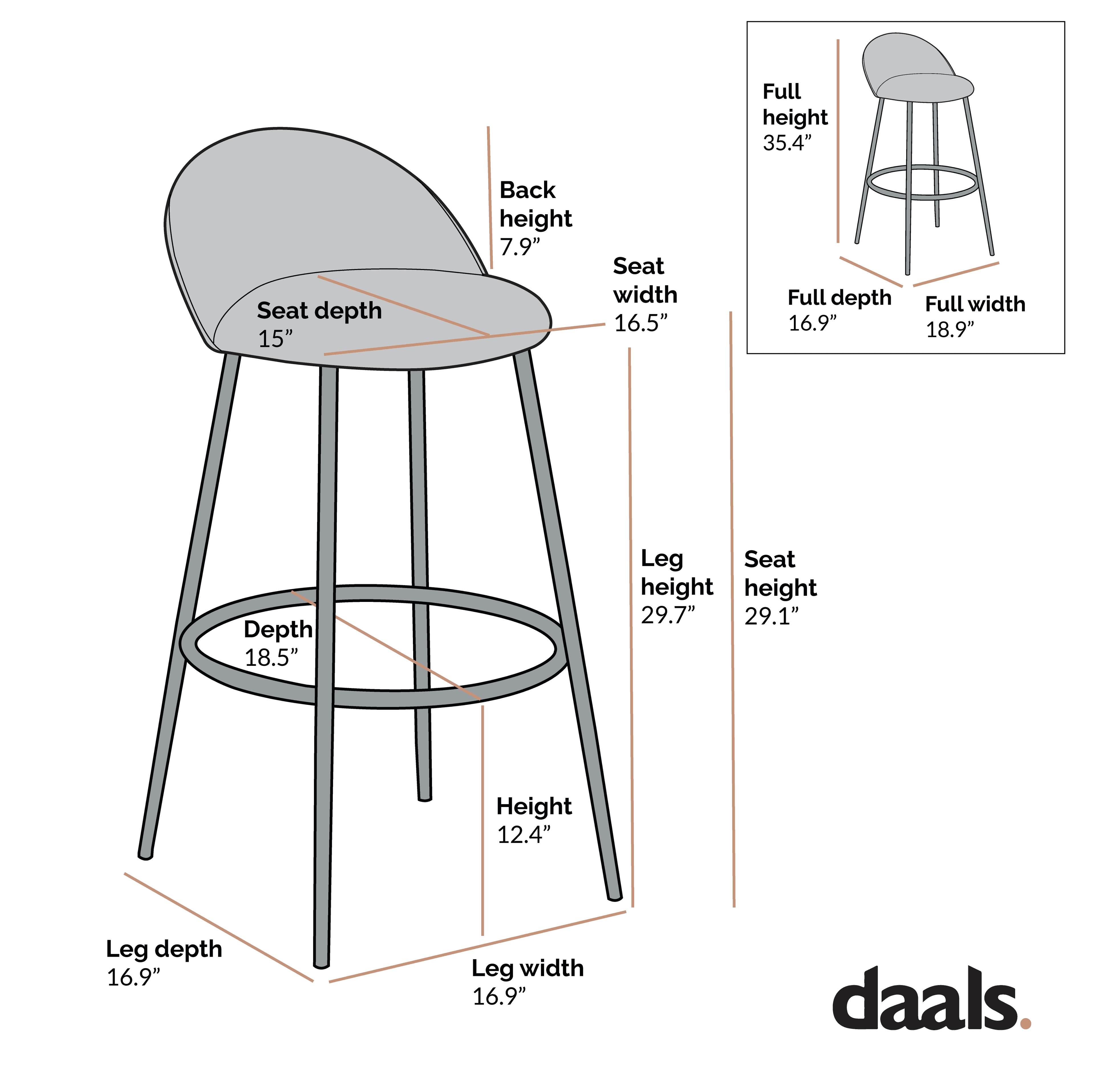 Barton Set of 2 Grey Velvet Upholstered Bar Stools with Contrast Piping