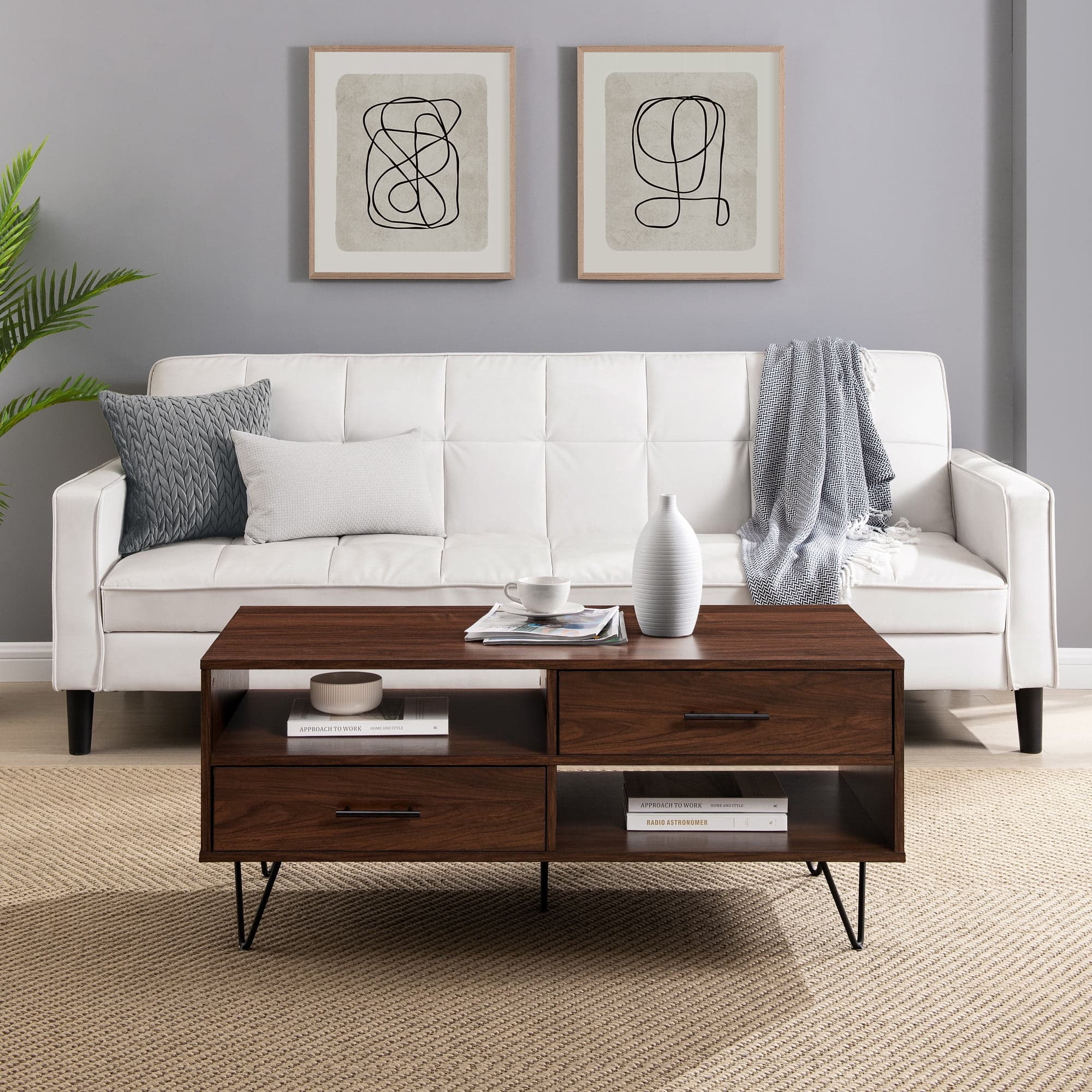 Walker Edison 42” Mid-Century Modern Coffee Table, Dark Walnut