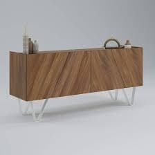 The Emma sideboard measures 66.1x29.4x17.7 inches, featuring 4 doors with a modern diagonal cut and soft-close, adjustable hinges. The handle-free doors open from the top by pulling towards yourself. Each internal compartment has a fixed shelf to optimise space, while the top surface can support up to 110 lbs evenly distributed. Made from high-quality melamine-faced chipboard with a textured finish and supported by