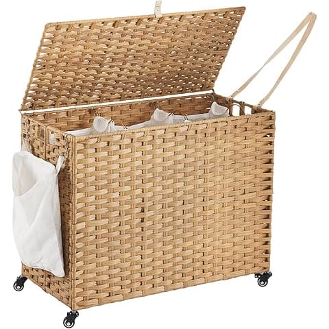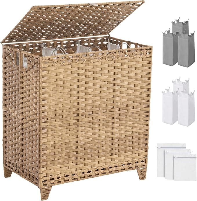 Buy Laundry Hamper with Lid, 190L Large Laundry Basket 3 Section with 6 Removable Liner Bags & 3 Mesh Laundry Bags, Handwoven Rattan Clothes Hamper with Heightened Feet, No Install Needed, Natural: Laundry Hampers - Amazon.com ✓ FREE DELIVERY possible on eligible purchases