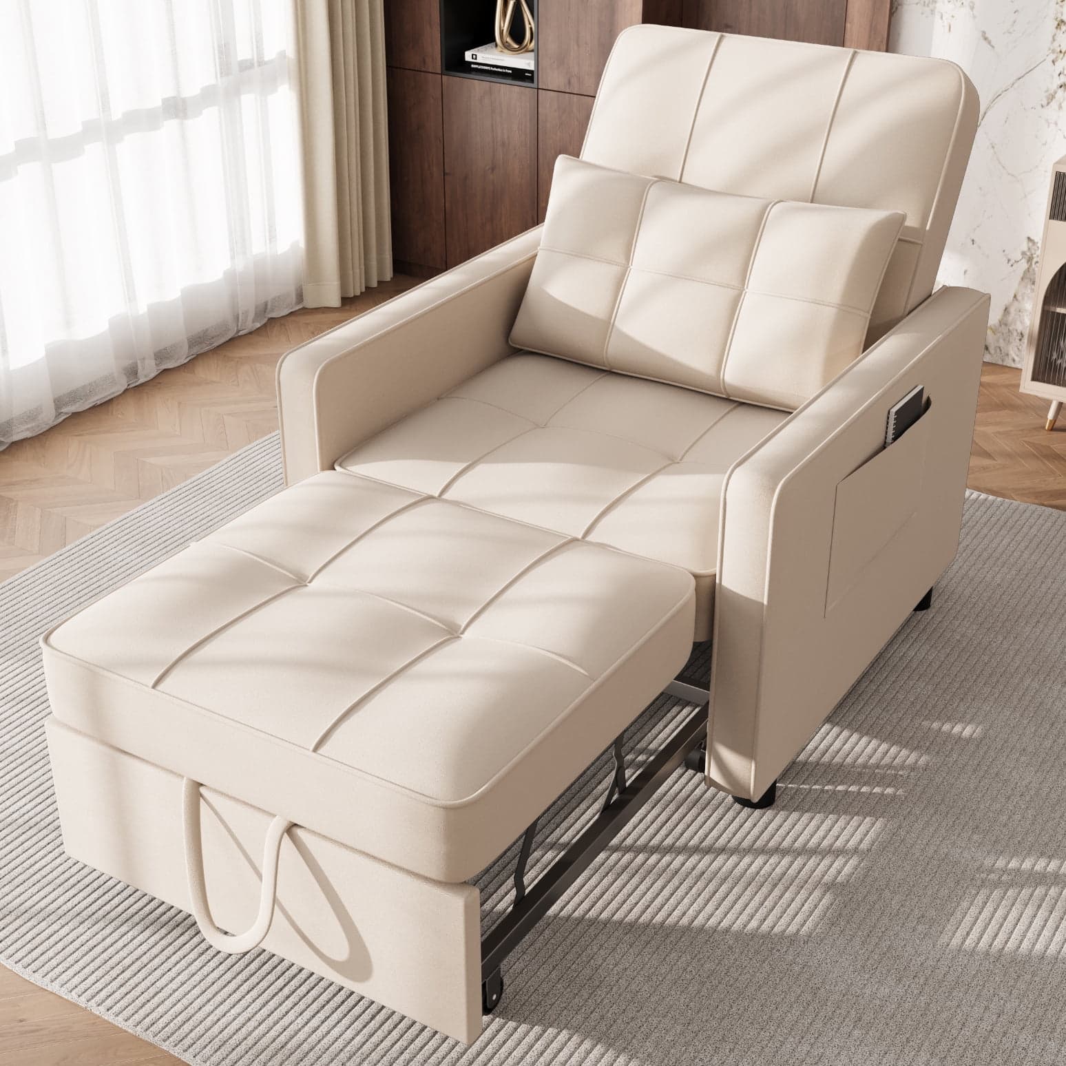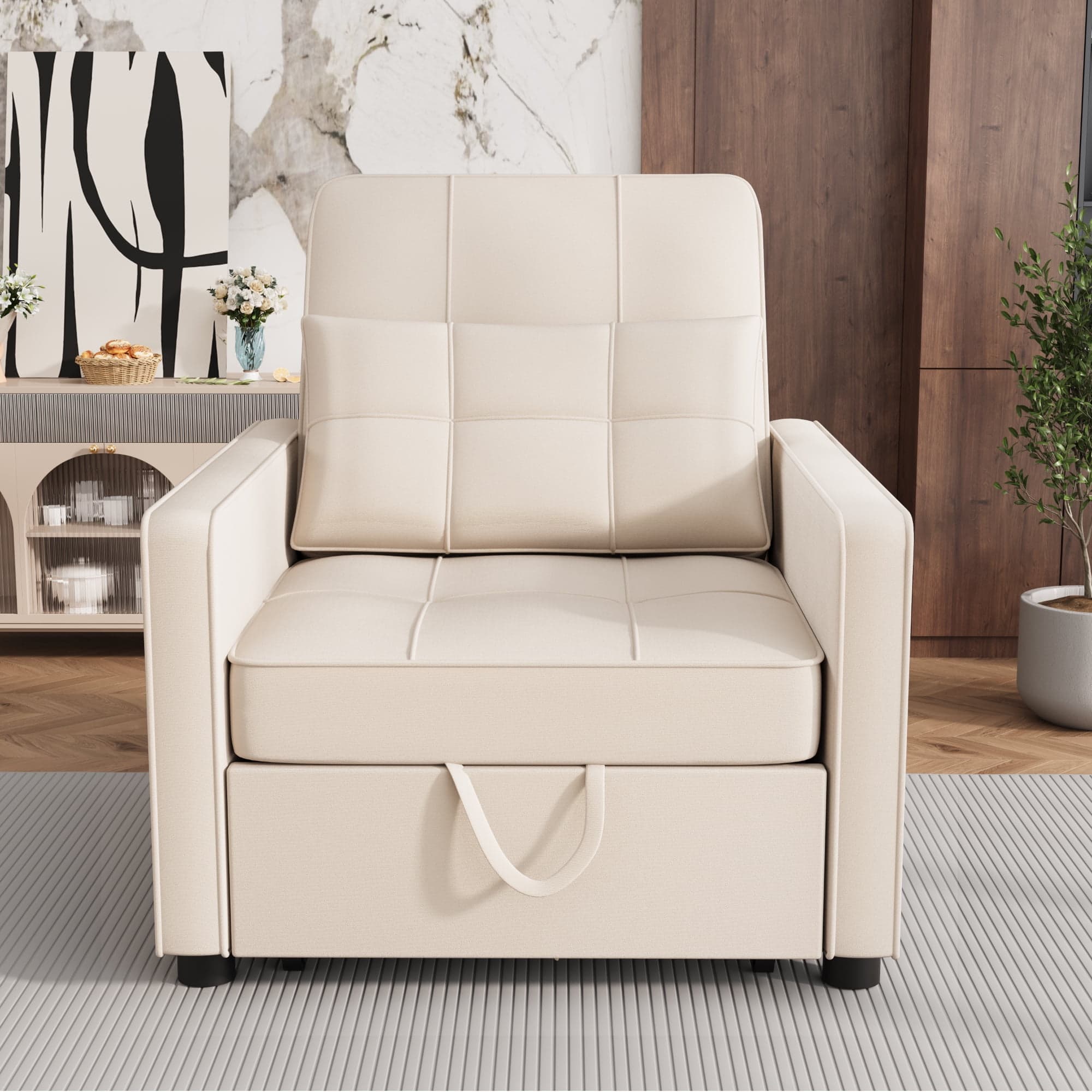 Homall Sleeper Sofa Chair Bed 3 in 1 Convertible Bed Chair Adjustable Sleeper Chair Pullout Sofa Bed,Beige