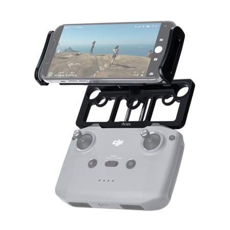 Aries Mavic Mini 2/3 Tablet Stand, 4-8.5" Smart Mount Holder Bracket for DJI Mavic. Specifically designed mount holder for DJI Mavic Mini 2/3 and other DJI drone models. Unique convex design and dedicated remote control slot for secure and stable device placement. 360° rotation and 45° tilt capabilities for optimal control and viewing angles. Convenient and versatile setup options: on a table, handheld, or attached to a lanyard. Easy installation and disassembly with thumb screw mount, no additional tools required.