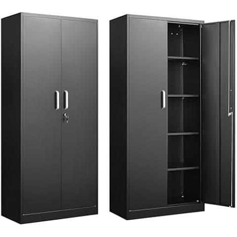 Versatile Storage Solutions: Our versatile storage cabinet offers durable storage solutions for various spaces, including the garage, kitchen, and laundry room. Crafted from high-quality steel, this metal storage cabinet features adjustable shelves to accommodate items of different sizes, from pantry essentials to tools. With its reliable locking system, including a three-point lock, your belongings remain secure.