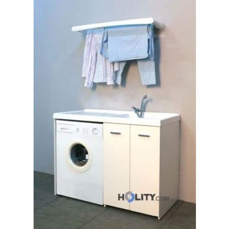 Laundry with tub methacrylate available in different colors and in different sizes with a height of 93 cm. Made in Italy. The product is available in emissions controlled sizes, all with a height of 93 cm, and in different colors. Production and design Made in Italy. The cabinet doors are MDF with rounded edges, lacquered in white or matte finish in different colors. The structure is in coated panel waterproof material that does not absorb water.