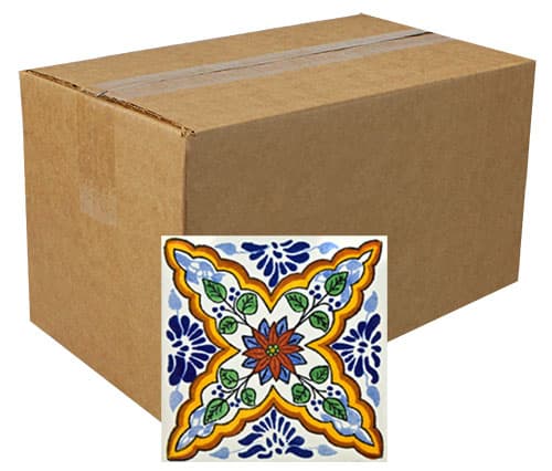 Flor con Ramas Hand-Painted Talavera Tiles (Box of 90)