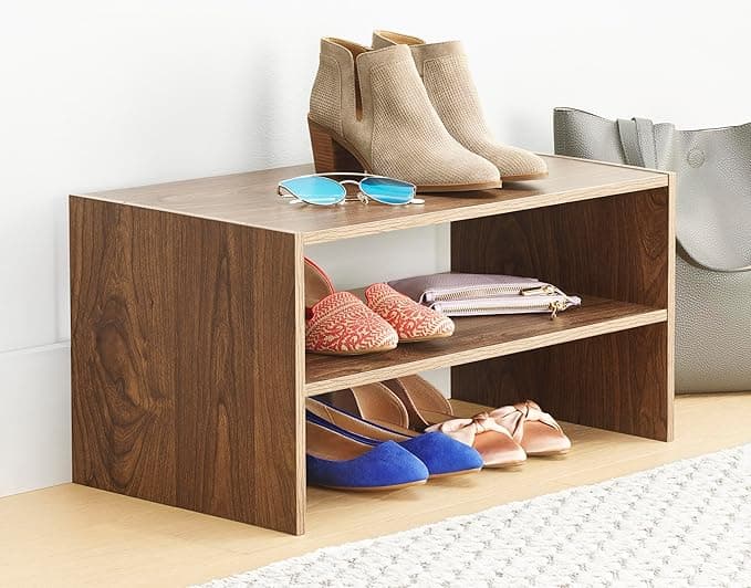 Whitmor Wood Stackable 2-Shelf Shoe Rack, Walnut, 24 inches