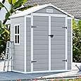CDCASA 6x3 FT Storage Shed, Waterproof Resin Outdoor Storage Shed with Floor & Window & Lockable Door, Tool Shed for Garden Patio, Backyard,Lawn, All Weather Use, Light Gray