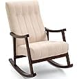 This comfortable rocking chair is a great solution to spend hours of resting in your home with a good book. You can relax all day long thanks to the nursery chair's high backrest and padded armrests, which fit your body for a more comfortable experience. The gentle and smooth rocking motion will allow you to get the ultimate swing experience. The soft cushion will provide you with unimaginable comfort to enjoy. Made with high-quality rubber wood, our chairs features a sturdy wooden frame with the maximum load of 330 lbs. This classic glider chair can surely satisfy your daily relaxation needs, and it is perfect for taking a nap or reading a book.