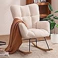 KOMFOTT Upholstered Rocking Chair, Living Room Leisure Rocker with Rubber Wood Frame, Accent Armchair with High Backrest & Storage Pocket, Modern Sofa Chair for Living Room, Bedroom, Nursery (Beige)