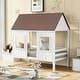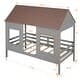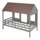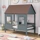 Twin Size Low Loft Wood House Bed with Two Front Windows