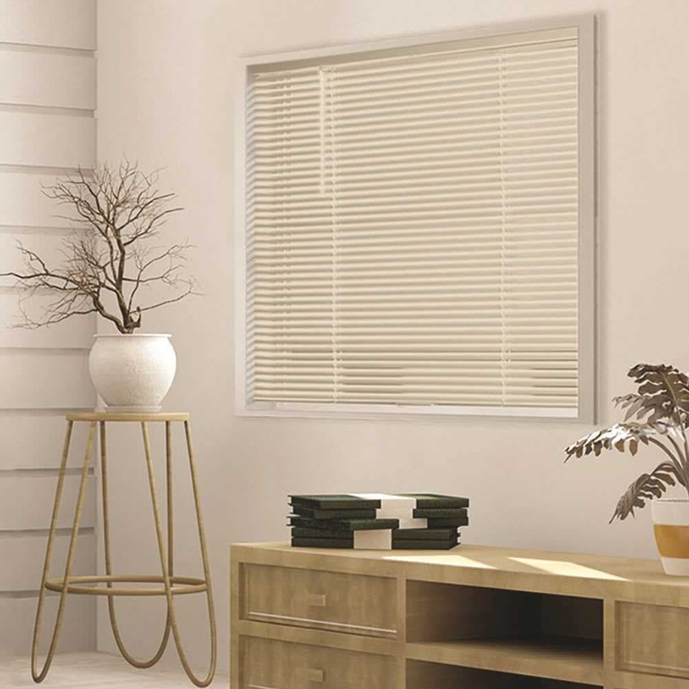 48x64" 1"Vinyl MiniBlind Alab Crdlss. Cordless Mini Blinds provide security, privacy and safety with no exposed cords. Totally free from hazardous loop, the cordless feature creates a sleek look. Easy to operate with zero slipping when pushing the blind up and no rebounding when blind is fully extended. Slat rotation controlled by wand is precise. The blinds are lead free, child safe and easy to operate. The blinds are washable.
