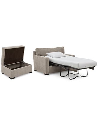 Furniture Radley 54" Fabric Chair Bed & 36" Storage Ottoman, Created for Macy's - Macy's