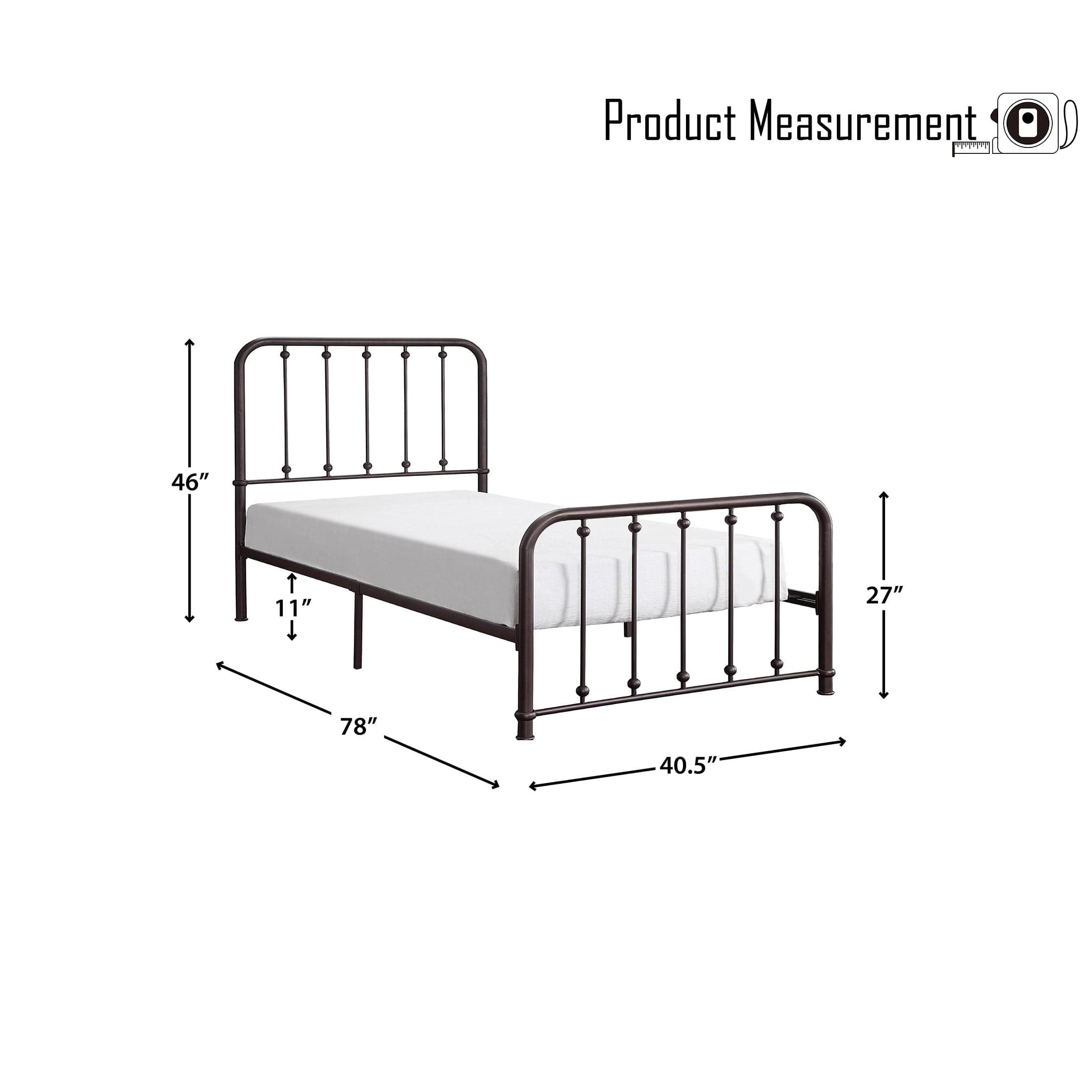 OakvillePark Lowden Vertical-Slat Metal Platform Bed, Twin, Dark BronzeWith a design that speaks to your love of vintage styling, our Lowden Collection helps you to achieve the timeless aesthetic you wish to present in your bedroom. Classic elements, such as ball accents on the vertical rods of the headboard and footboard, and the curved profile, are finished in an antique bronze serving as an effective statement on the traditional look. The collection is offered in Full, Twin, and Queen for versatile placement within your home.