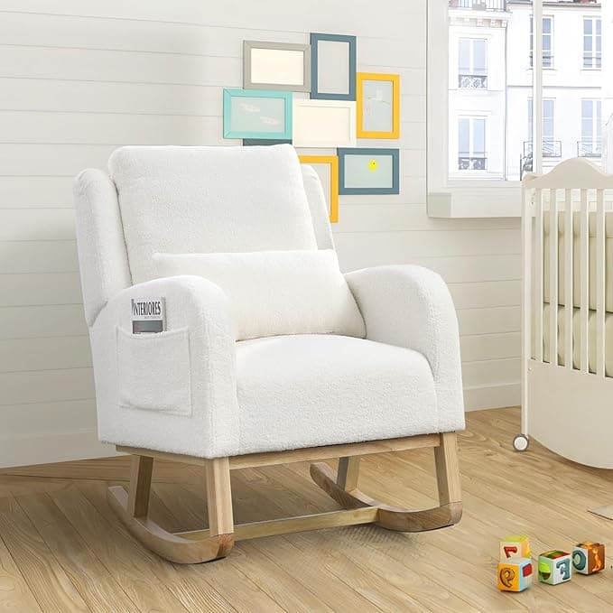 Buy JEEOHEY Rocking Chair for Nursery, Teddy Upholstered Wingback Rocking Chair, Accent Glider Rocker with Comfy High Back Curved Armrest Lumbar Pillow for Living Room, Bedroom, White: Chairs - Amazon.com ✓ FREE DELIVERY possible on eligible purchases