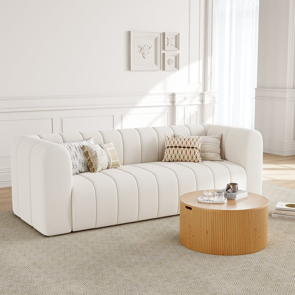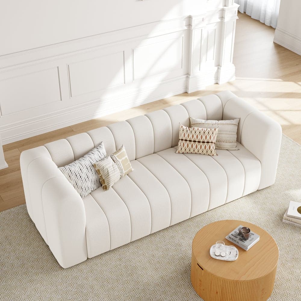 Canapé moderne rembourré en velours côtelé 2230 mm, canapé 3 places, canapé de luxe, cadre en bois massif