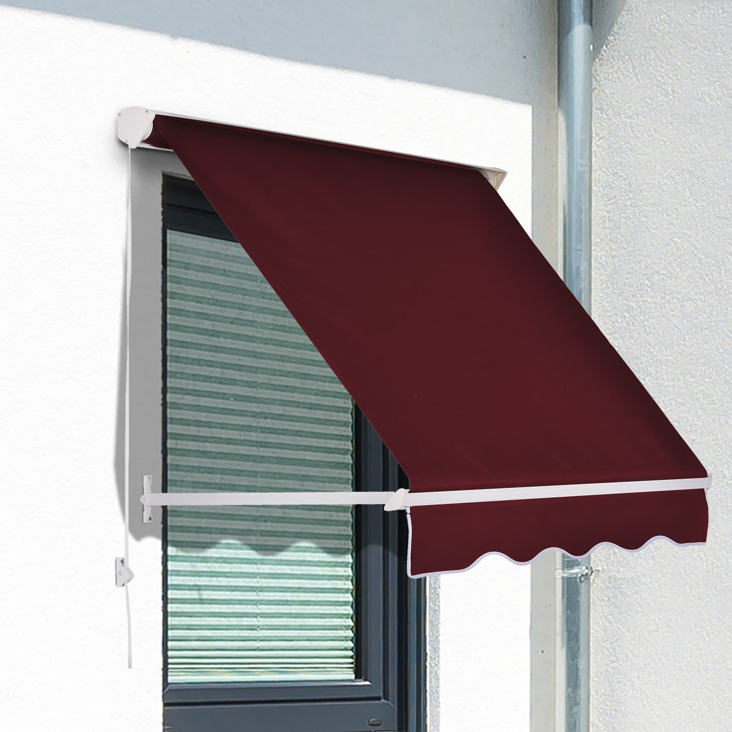 Outsunny 6' Drop Arm Manual Retractable Window Awning Sun Shade Shelter for Patio Balcony Outdoor, Aluminum, Wine Red