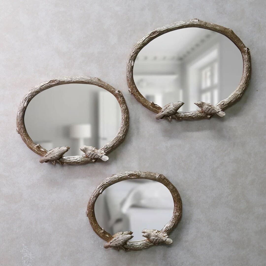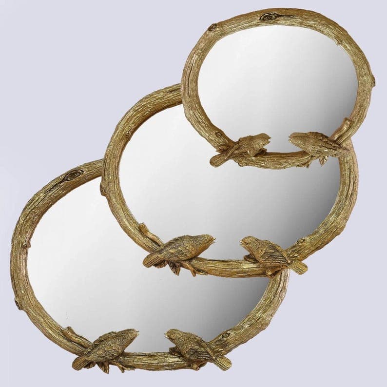 Set of 3 Oval Bird Mirrors / Vintage Taupe Branch Mirrors With Bird Details / Bird and Tree Branch Frame Design / Decorative Birds Mirror - Etsy