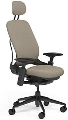 Steelcase Leap Desk Chair V2 with Headrest in Buzz2 Sable Fabric - 4-Way Highly Adjustable Arms - Black Frame and Base - Soft Dual Wheel Hard Floor Casters