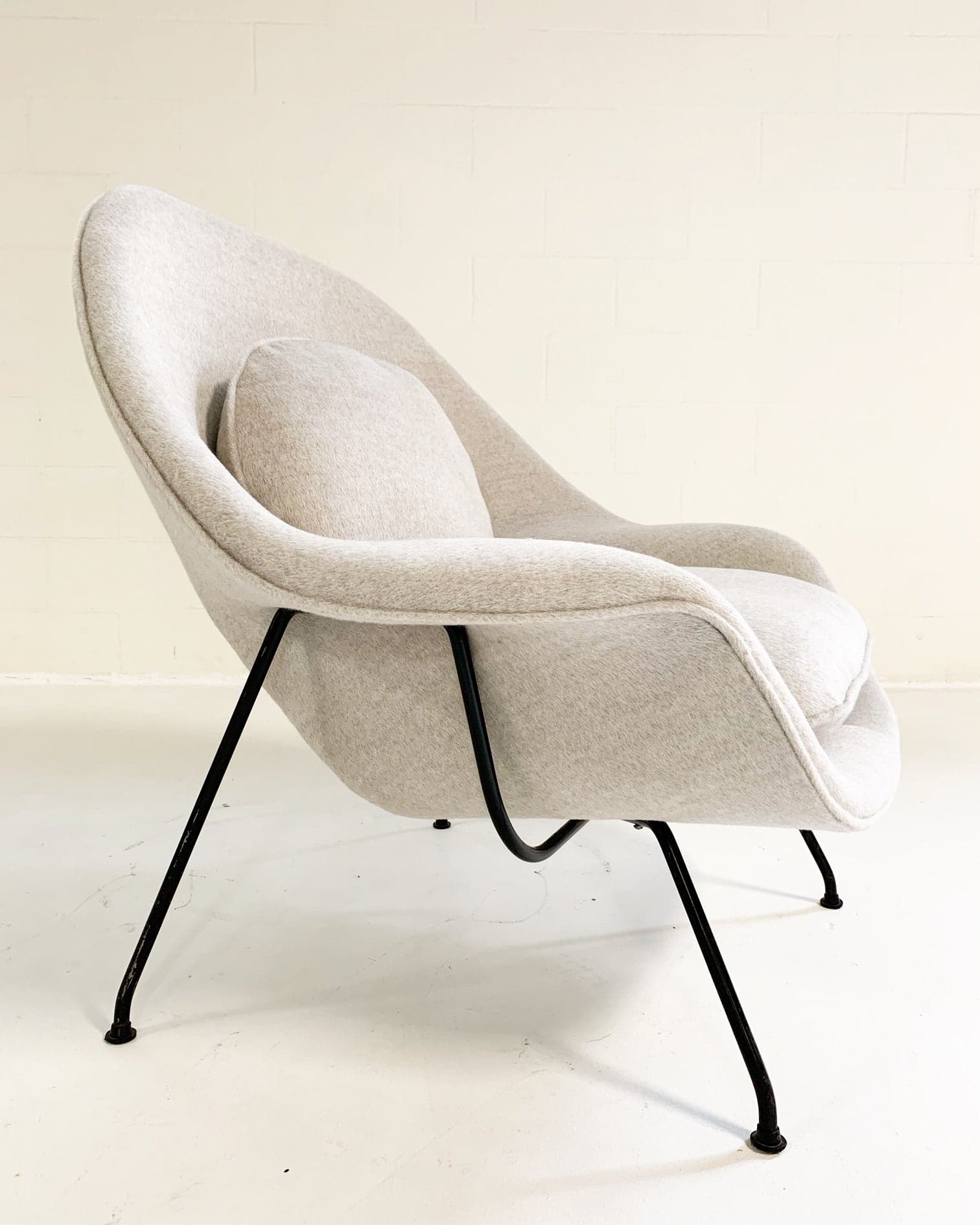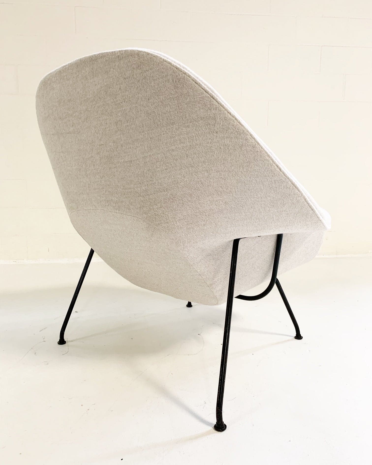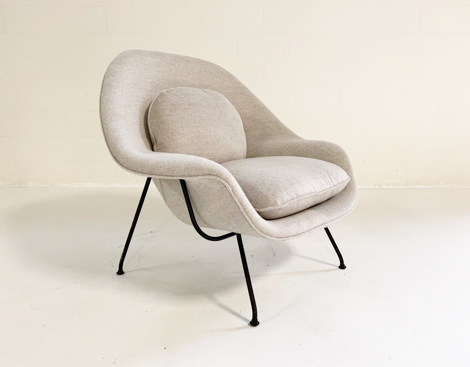 A favorite of the Forsyth design team! We collected this beauty for its icon status. “Eero Saarinen designed the groundbreaking Womb Chair at Florence Knoll's request for ‘a chair that was like a basket full of pillows - something she could really curl up in.’ This mid-century classic supports countless positions and offers a comforting oasis of calm hence the name.” —Knoll. Our master upholsterers went down to the bones of the chair, removing all old foam and replacing with new foam. Luxurious down feathers generously fill the back and seat cushions. Our designers chose beautiful Loro Piana alpaca wool for upholstery. Why We Love This Material | This beautiful fabric is the pinnacle of luxury. We love the long fibers that mimic the look of a natural hair on hide. And the alpaca wool blend is just as soft as cashmere. This colorway, the light grey, resembles that of a very fine Italian-made men's suit.