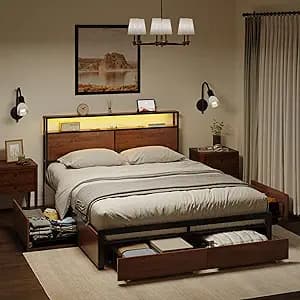 Buy HAUSOURCE Queen Bed Frame with Storage Headboard and 4 Drawers Bed Frame Queen Size with Charging Station LED Lights Metal Platform Non-Slip Without Noise No Box Spring Needed: Bed Frames - Amazon.com ✓ FREE DELIVERY possible on eligible purchases