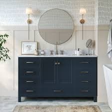 ARIEL Cambridge 61-in Midnight Blue Undermount Single Sink Bathroom Vanity with White Natural Marble Top A061SCW2OVOMNB at Lowes.com
