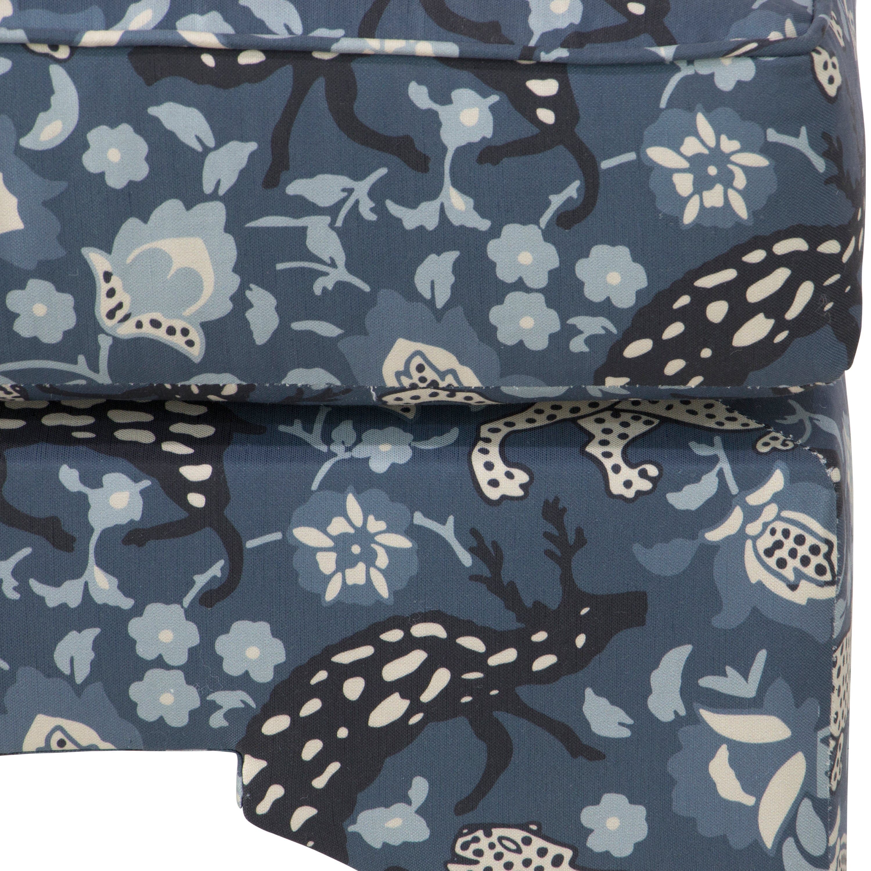 Maude Pillow-Top Ottoman - Leopard Blue Linen - Cloth & Company - Handcrafted | Cushion, Bolster | Footstool, Footrest, Low Seat - Ideal Storage, Decor, Furniture