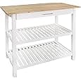 The Designs2Go 3 Tier Butcher Block Kitchen Prep Island with Drawer by Convenience Concepts combines style and smarts all in one. Expand your countertop space and make dinner preparation even easier by displaying this stationary island in the center of your kitchen. The smooth butcher block countertop offers a sleek and stylish station to assist with your cooking needs. When not in use, utilize this functional piece as a microwave cart, coffee bar station, or mini fridge stand. Two additional slatted shelves have the option to be used as wine bottle storage or for larger kitchen essentials. A stainless-steel towel holder and one spacious drawer on smooth roller slides offer easy access to smaller utensils. Practically maintenance-free, this kitchen island is finely crafted from solid wood and finished in non-lead-based paint. Perfect for small kitchens, apartments, and anywhere you might need a little extra storage or kitchen prep space. Keep your space effortlessly organized by adding the eye-catching Designs2Go 3 Tier Butcher Block Kitchen Prep Island with Drawer from Convenience Concepts.