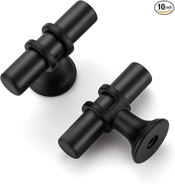 HOME EDIT 10 Pack Matte Black Cabinet Knobs 2 Inch - Black Drawer Knobs Single Hole Black 3T Bar Hardware Drawer Pulls for Kitchen Cabinets and Dressers