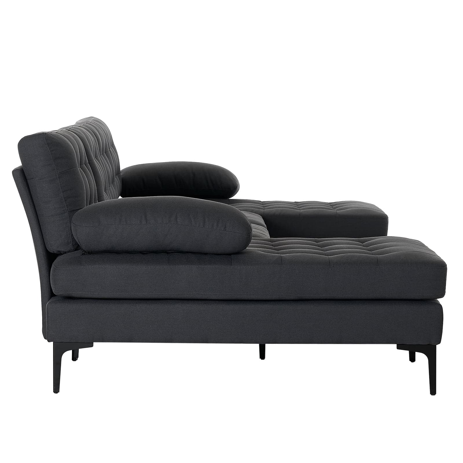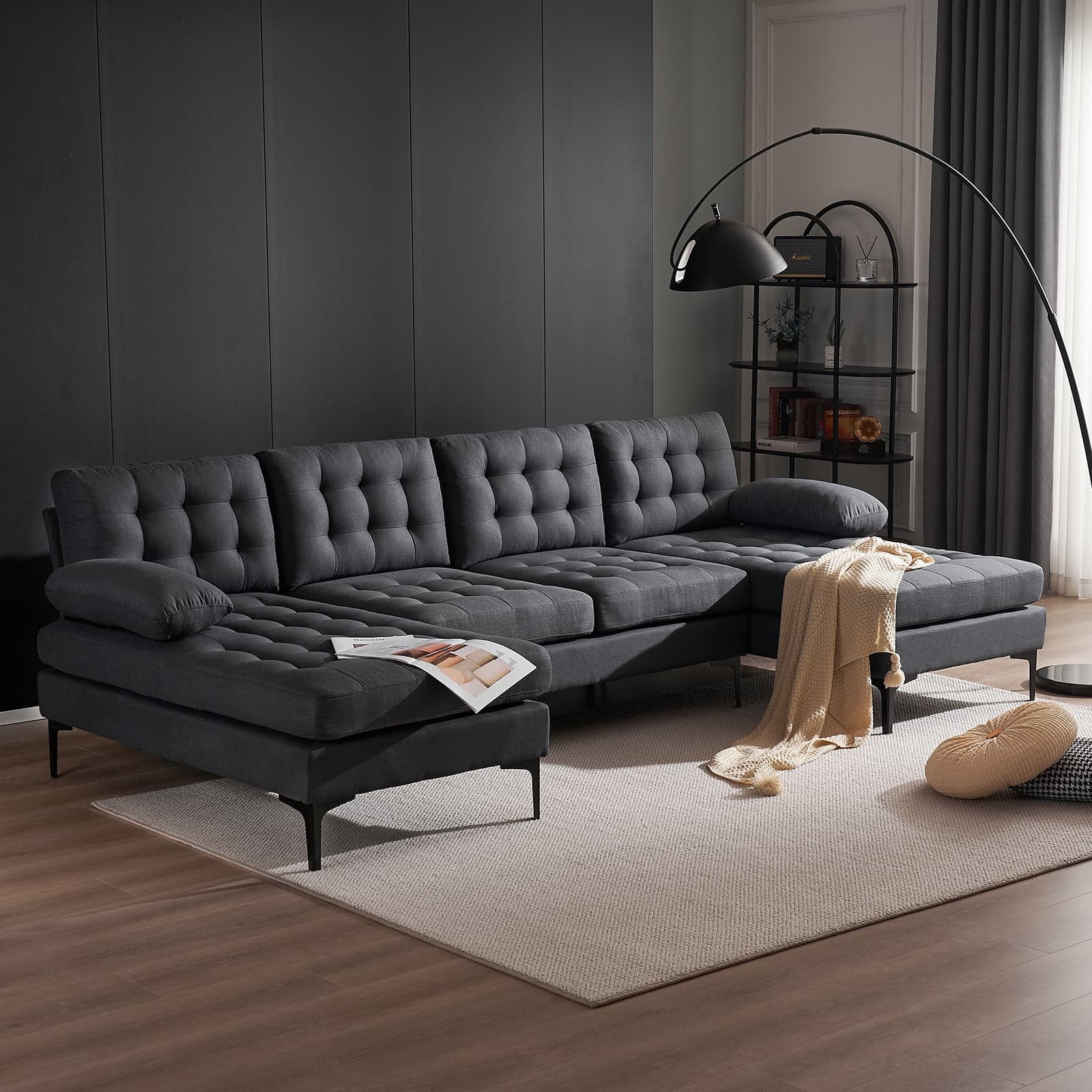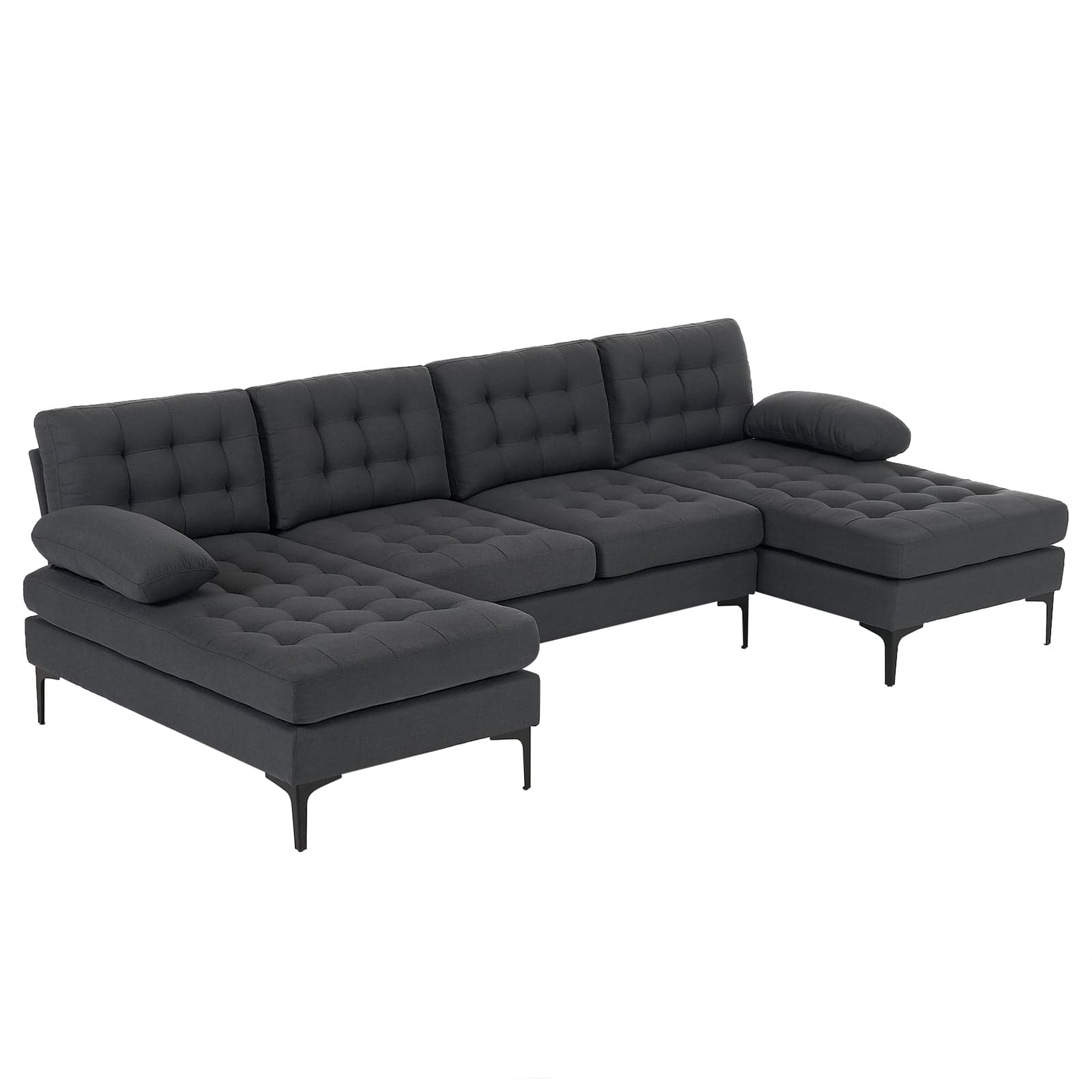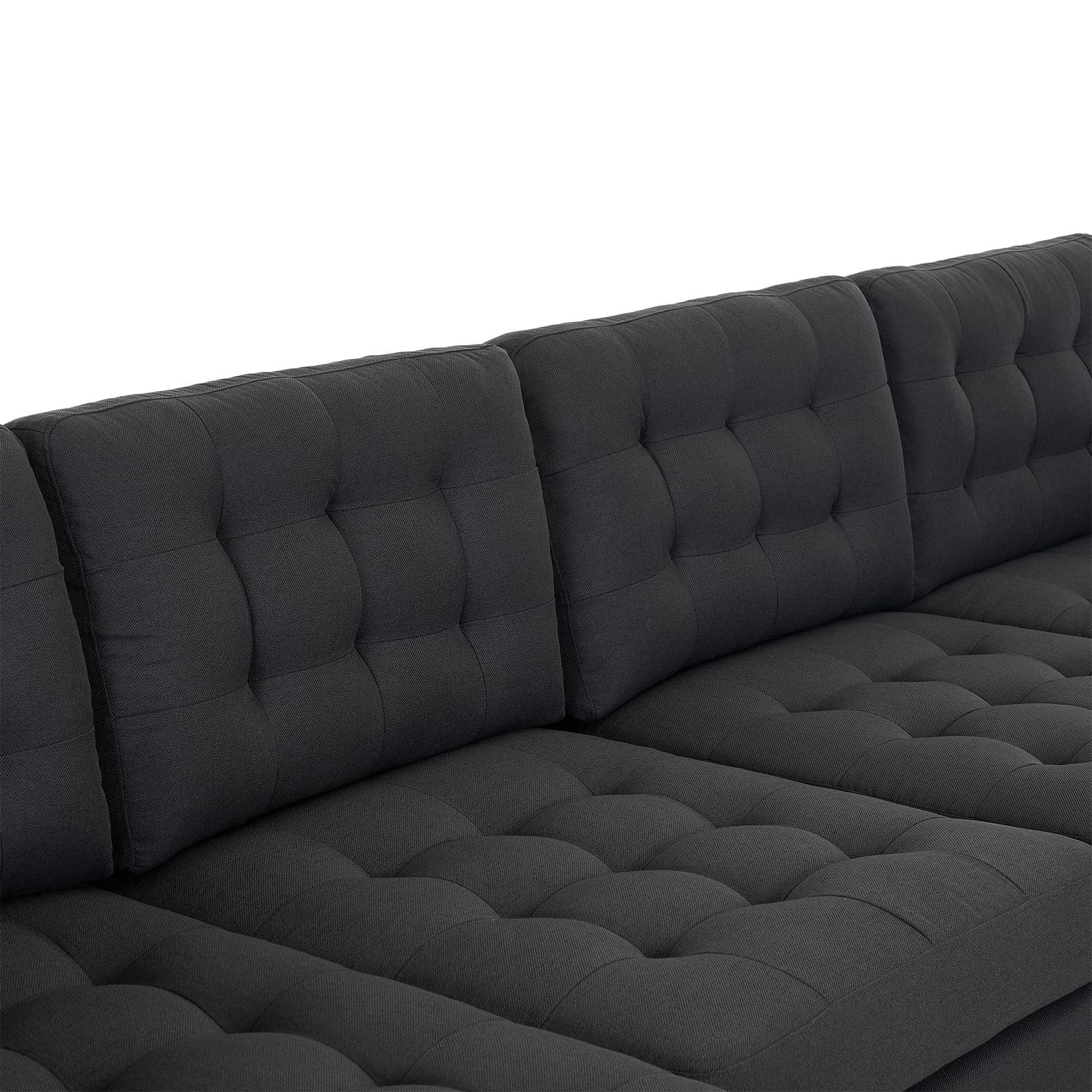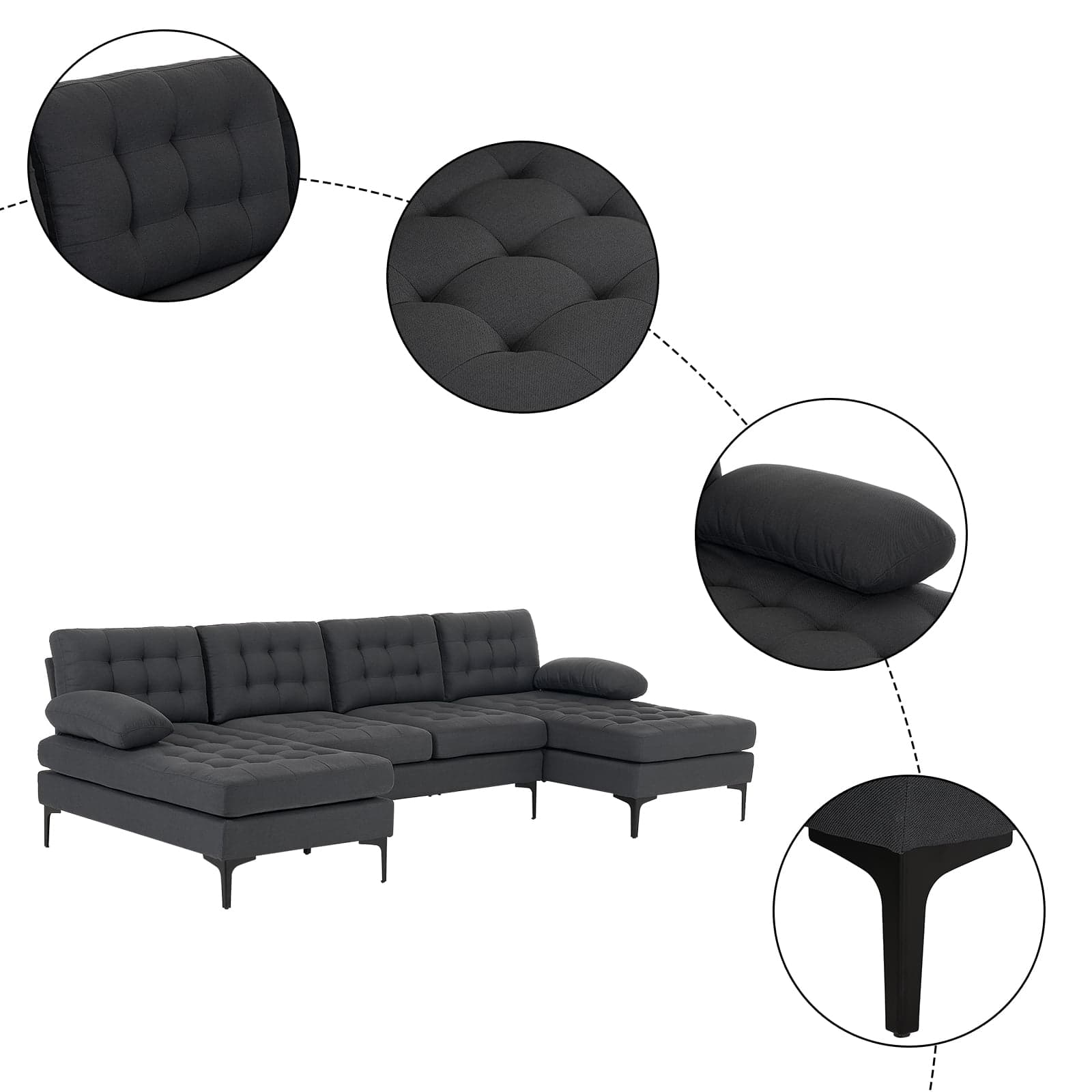 U-shaped Armrest Backrest Seat Pull Point Wooden Frame Iron Soft-Covered Frame Black Feet Indoor Sectional Sofa, Dark Gray